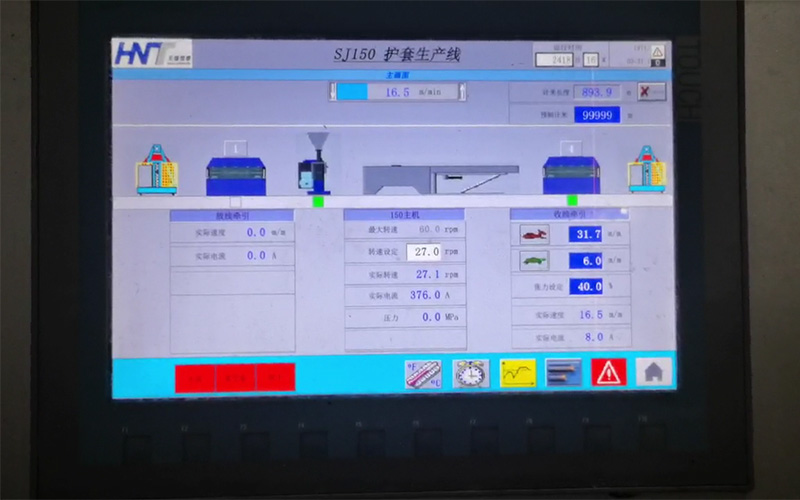 The one-step Silicohydride Crosslink Insulation Extrusion Line is designed for the insulation extrusion of cooper and aluminum conductors. It is suitable in the insulation extrusion for power cables range from 1kV to 10kV, also suitable for overhead conductors, plastic cables and etc. Applicable materials include PVC, PE and XLPE.